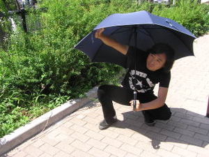 (実際はスタッフリエが日傘をさしながらちらしを配布し、僕はテントの中に非難しておりました)